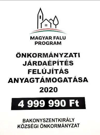 alapján a Bakonyszentkirály Községi Önkormányzat 4 999 990 Ft összegű támogatásban részesült.