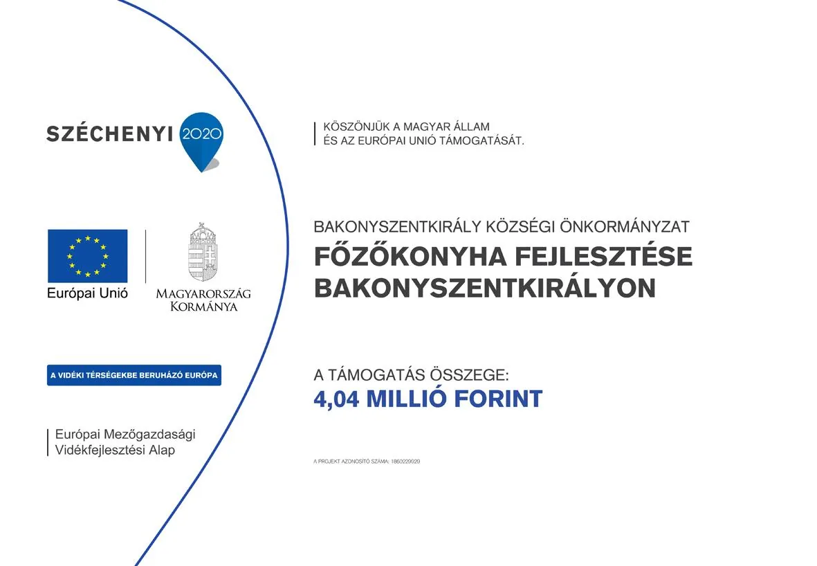 A Vidékfejlesztési Program keretén belül a Vidékfejlesztési Program Irányító Hatósága Helyi termékértékesítést szolgáló piacok infrastrukturális fejlesztése, közétkeztetés fejlesztése című, VP6-7.2.1-7.4.1.3-17 kódszámú felhívás alapján Bakonyszentkirály Községi Önkormányzatot 4,04 millió Ft összegű támogatásban részesítette.